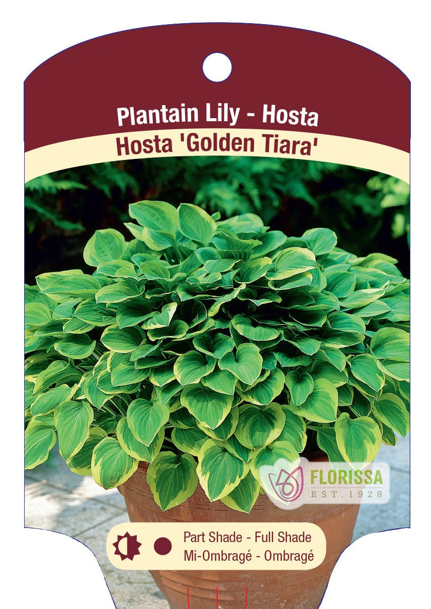 Unit price per'Golden Tiara' is a small to medium sized hosta that forms a spreading mound of foliage. This hosta shows wide oval-shaped leave which are medium green in colour, has golden-yellow edges and dainty light purple flowers.